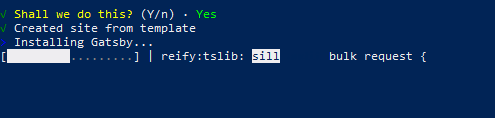 This will produce an output similar to this: - After you confirmed the questions, Gatsby will create the site for you: