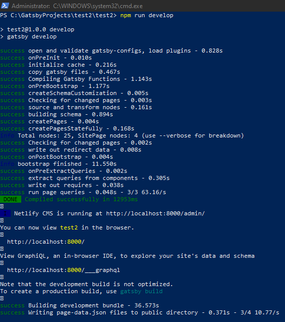 There are multiple options to work with Gatsby on Windows. You can install the Windows Linux Subsystem (WSL) and work from there. Or open up a PowerShell in administrator mode, and I choose the latter.
